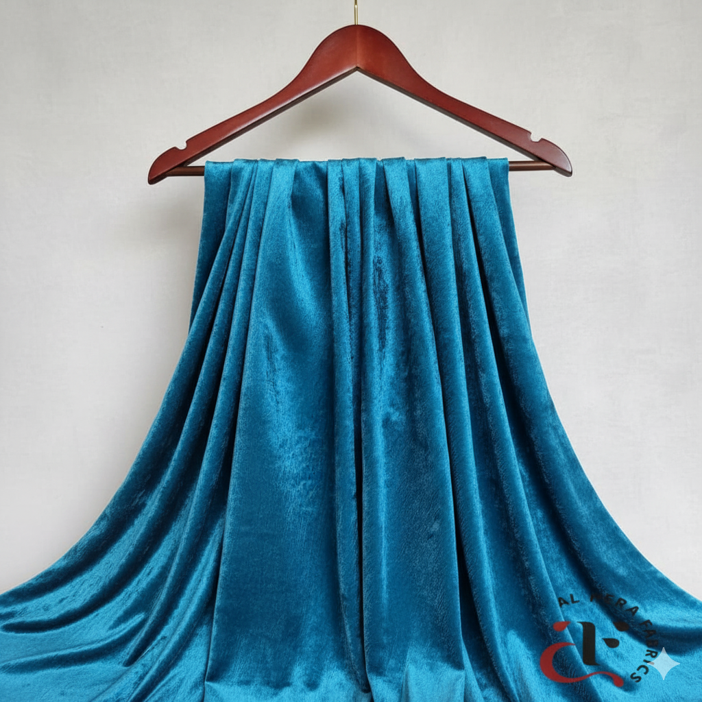 Introducing our stunning, high-end Jewel Teal Dubai Silk. This fabric is a masterpiece of depth and shimmer, featuring a rich, jewel-toned color and an exquisite crinkle texture that drapes with supreme fluidity. Ideal for creating show-stopping gowns, evening wear, and sophisticated Abayas.