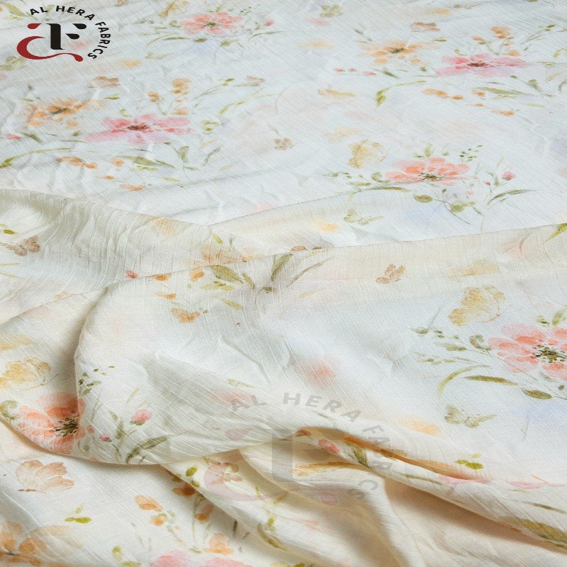 Experience the freshness of spring with our Peach Blossom Print Maisha Cotton. This fabric features soft watercolor-style flowers in blush pink and warm peach tones on a delicate cream base. Lightweight, breathable, and perfect for elegant, airy ethnic and fusion wear.