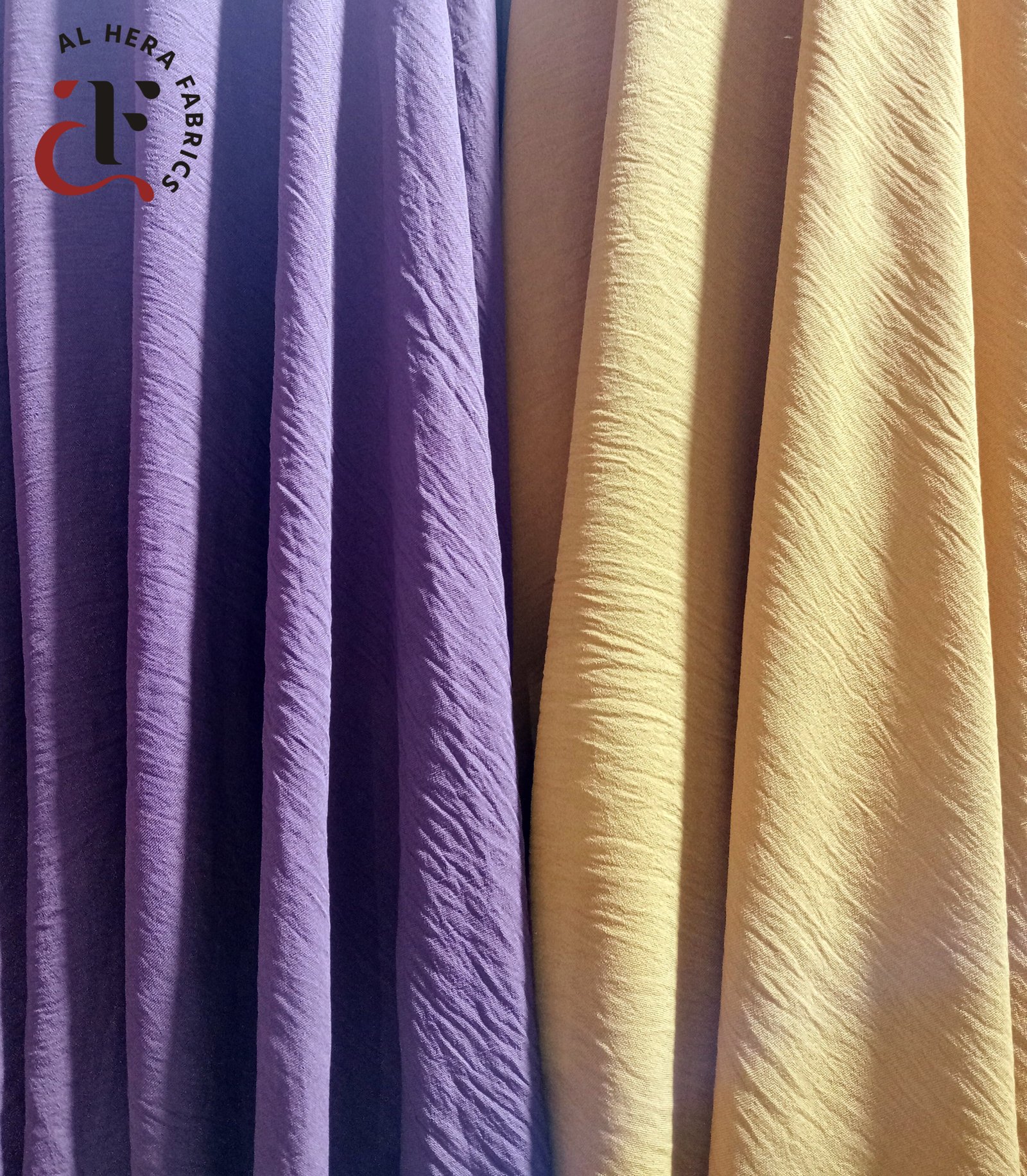 Elevate your next project with the luxurious feel and eye-catching texture of the CY Crêpe Fabric. This listing showcases two beautifully contrasting shades: a rich, calming Wisteria Purple and a warm, inviting Buttermilk Yellow.